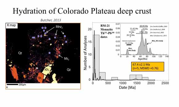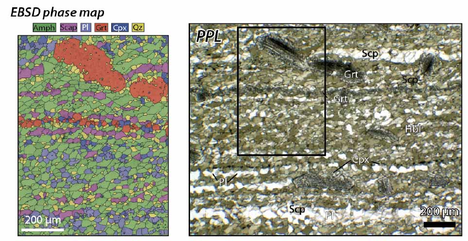Our research primarily focuses on deep continental crust, specifically the physical and chemical processes associated with rock deformation. I pursue questions such as: How do variations in mechanical properties, chemical composition or mineral reactions due to changing pressure, temperature, and water availability impact where and on what scale deformation occurs? How do these processes influence the physical properties of the crust? How do they influence our ability to remotely image the structure of tectonic plates through geophysical methods? What do the intrinsic characteristics and evolutionary tendencies of these rocks imply about the growth, modification and/or stabilization of the continents? With these questions in mind, I generally group our research efforts into the following topical areas of deep crustal evolution: 1) deep crustal rheology, 2) seismic and density properties, and 3) accessory mineral petrogenesis.